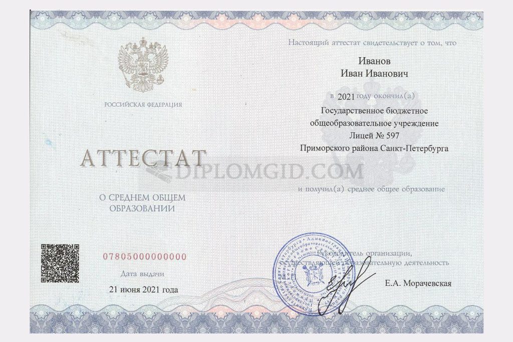 Аттестат за 11 класс 2021-2025 года с QR кодом